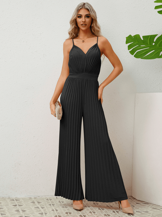 Felicia Plisse Relaxed Jumpsuit - Black