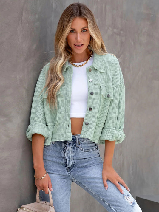 Fall In Waffle Pocketed Shacket - Mint