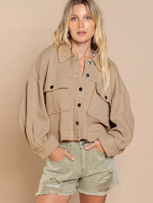 Fall In Waffle Pocketed Shacket - Khaki