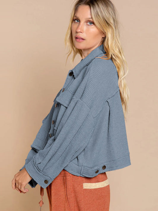 Fall In Waffle Pocketed Shacket - Blue