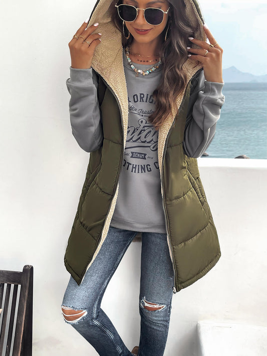 Fall And Forever Hooded Puffer Vest - Olive