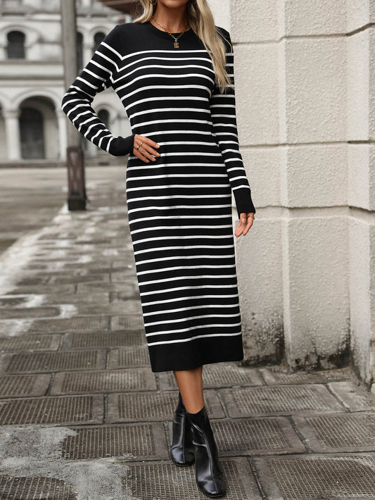 Seville Striped Sweater Midi Dress - Black