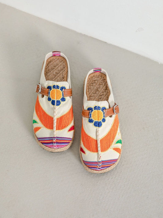 Cactus Rose | Honolulu Embroidered Linen Mules - beige