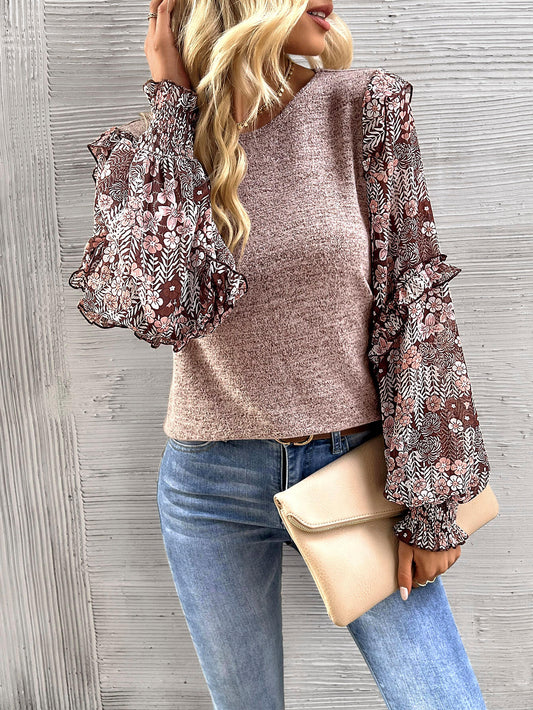Hairos Floral Contrast Blouse Sweater - Beige
